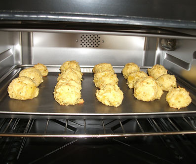 Enrole os bolinhos e leve para assar em forno pré-aquecido a 200º por aproximadamente 30 minutos ou até dourar.